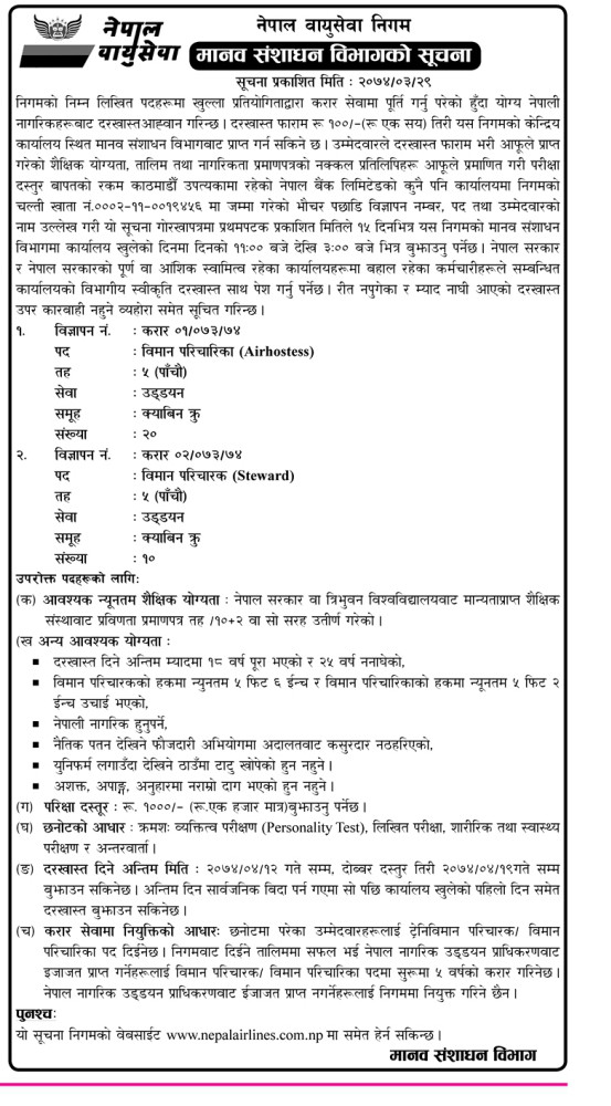 airhostess Post navigation Previous: Nepal Airlines Corporation Jobs Notice Leave a Reply Cancel replyYour email address will not be published. Required fields are marked *Comment * Name * Email * Website